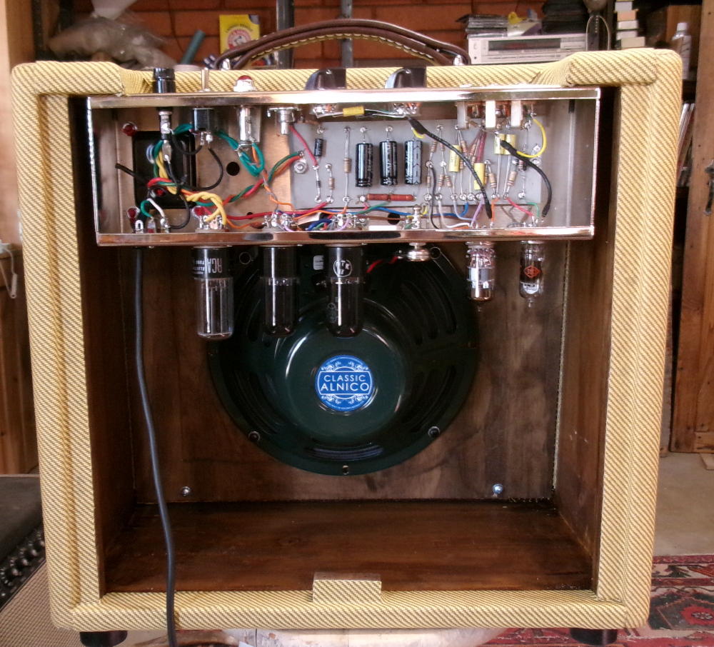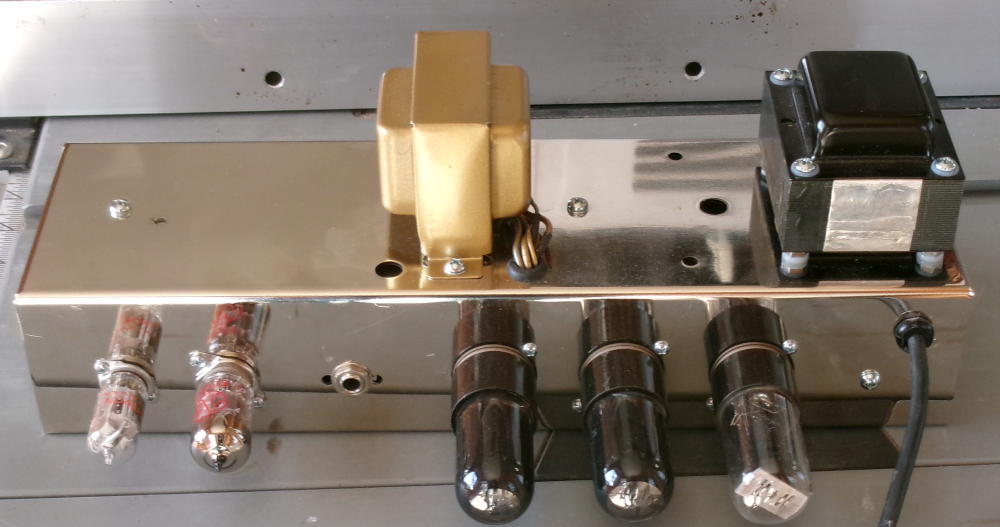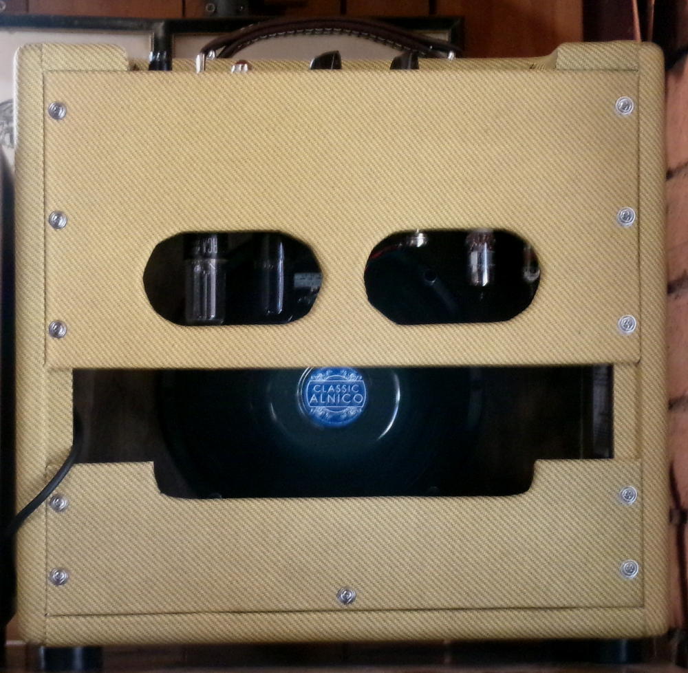 Just finished, Blonde Cyclone head. EF86 Preamp, 12AX7 phase inverter, a pair of EL84 power tubes and a NOS 5V4 (very rugged) rectifier tube.